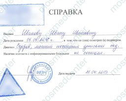 • Купить справку об отсутствии контактов с инфекционными больными