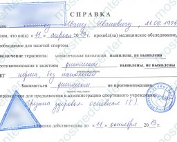 • Купить справку для занятия спортом